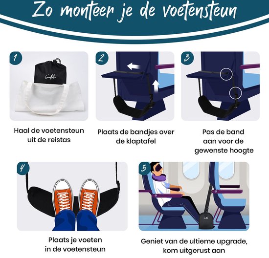 Repose-pieds pour avion - Hamac de pieds pour le voyage - également pour le bus, la voiture ou le train - Sunflake