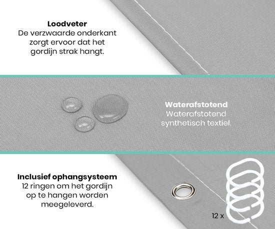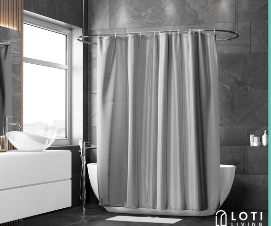 Loti Living Rideau de douche anti-moisissure - Gris - Anneaux inclus - Imperméable - Polyester - Rideau de douche 180x200 cm