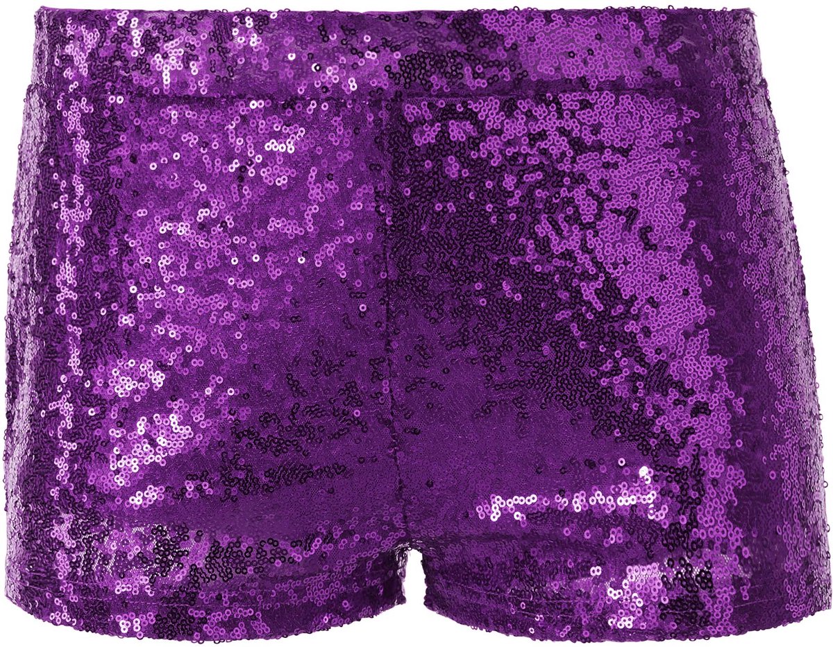 Dressforfun - Short à paillettes Lilas - Pantalon sexy avec taille élastique et cordon de serrage - Taille L