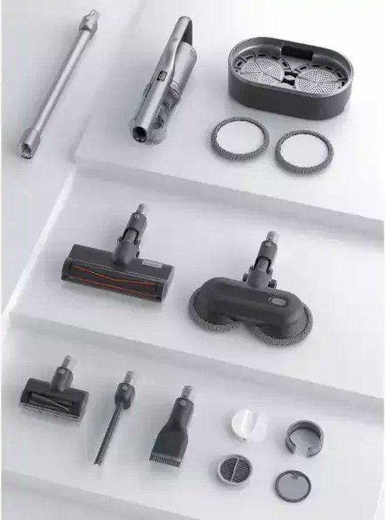 Le RS70, dernier modèle de la collection ROIDMI, est d'une qualité inégalée. La puissance de nettoyage est optimale, et tant l'autonomie de la batterie que la fonction de balayage ont été encore améliorées. Cette fonction de nettoyage est alimentée électriquement et fonctionne à une vitesse de 200 tr/min, ce qui permet d'éliminer sans effort les taches les plus tenaces. Avec le RS70, vous avez plus qu'un simple aspirateur sans fil ; c'est un outil de nettoyage 2-en-1 élégant, au design moderne, qui s'intègre parfaitement à votre intérieur. Bien entendu, il est livré avec différents accessoires et vous bénéficiez d'une garantie de 5 ans, ce qui vous permet d'utiliser pleinement l'aspirateur dans toute votre maison.