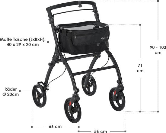 Dimensions du rollator (LxLxH) : 56 x 66 x 90 - 103 cm