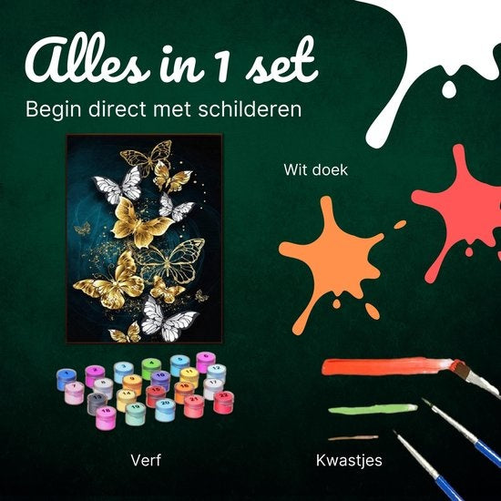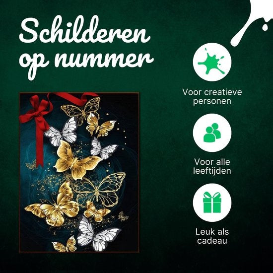 Rubye® Painting By Number Adults - Butterflies - Pinceaux inclus - Canvas Painting canvas - Colour by Number - 40x50cm