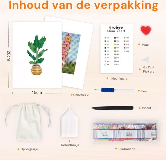 Rubye® Mini peintures de diamants - 2 pièces - Set - Adultes - Peinture de diamants pour enfants - Tour de Pise et plante d'intérieur - 15x20cm