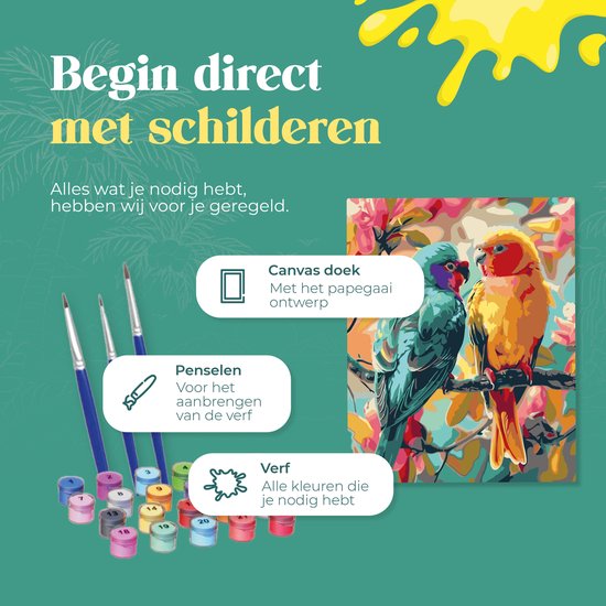 Rubye® Peinture sur toile - Perroquets pour adultes et enfants - 40x50cm