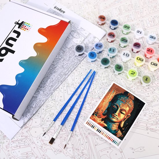 Rubye® Painting By Number Adults - Buddha - Peinture et pinceaux inclus - Canvas Painting canvas - Colour by Number - 40x50cm