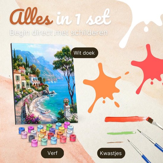 Rubye® Painting By Number Adults - Spanish Coast - With Brushes - Canvas Painting Canvas - Colours by Number - 40x50cm