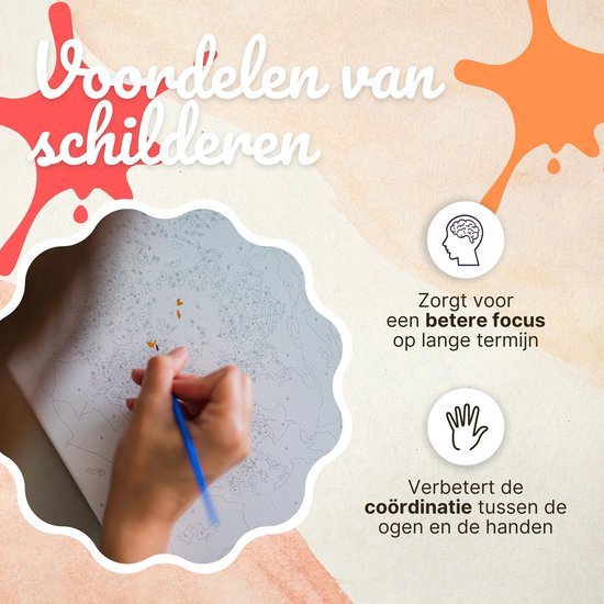 Découvrez l'artiste créatif qui sommeille en vous avec le pack complet de peinture par numéros de Rubye. La peinture par numéros offre aux adultes et aux enfants un moyen agréable de créer de belles œuvres d'art. Elle vous aide à vous détendre et à laisser libre cours à votre créativité. La peinture par numéros est un passe-temps très en vogue aux Pays-Bas et en Belgique. La toile comporte des cases numérotées qui constituent l'œuvre d'art. Avec la peinture acrylique et les différents pinceaux inclus, vous pouvez maintenant créer votre propre œuvre d'art étonnante.