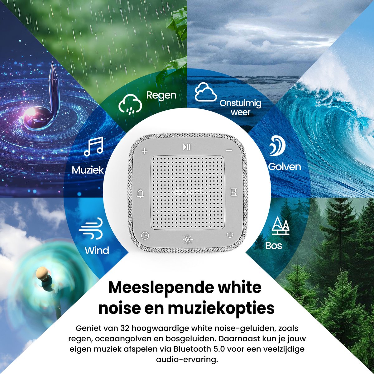 Saaf - Machine à bruit blanc - 32 sons - Entraînement au sommeil - Sans fil et avec minuterie - jusqu'à 8 heures de batterie - Gris