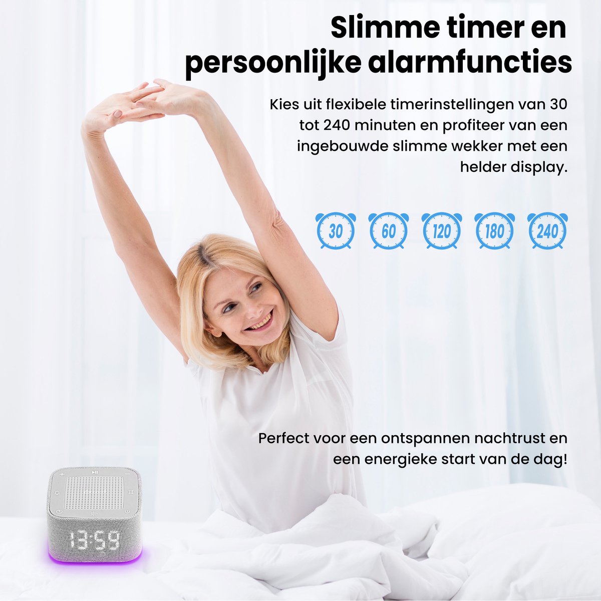 - Combinez le bruit blanc avec l'éclairage RVB pour un environnement de sommeil apaisant.