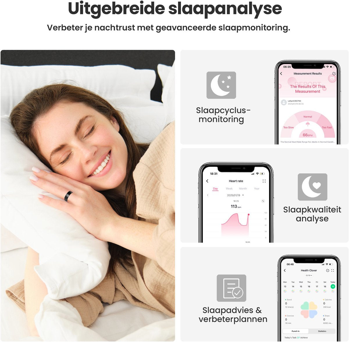 Avec des capteurs avancés, le Smart Ring suit avec précision vos habitudes de sommeil. Analysez vos stades de sommeil et obtenez des informations pour améliorer votre sommeil.