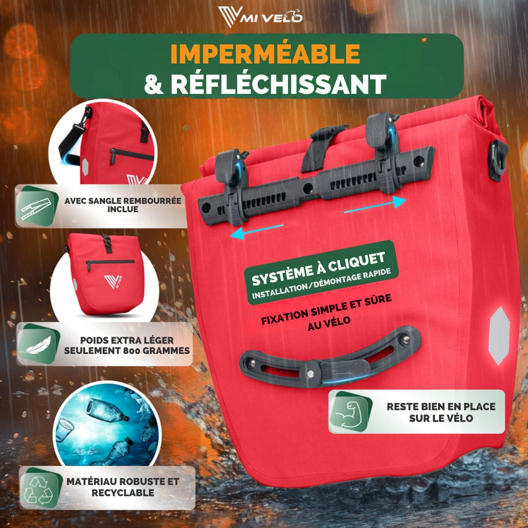 Sacoche pour vélo MIVELO- Imperméable et avec bandoulière - 20 litres - 50 x 31 x 14 cm - Rouge