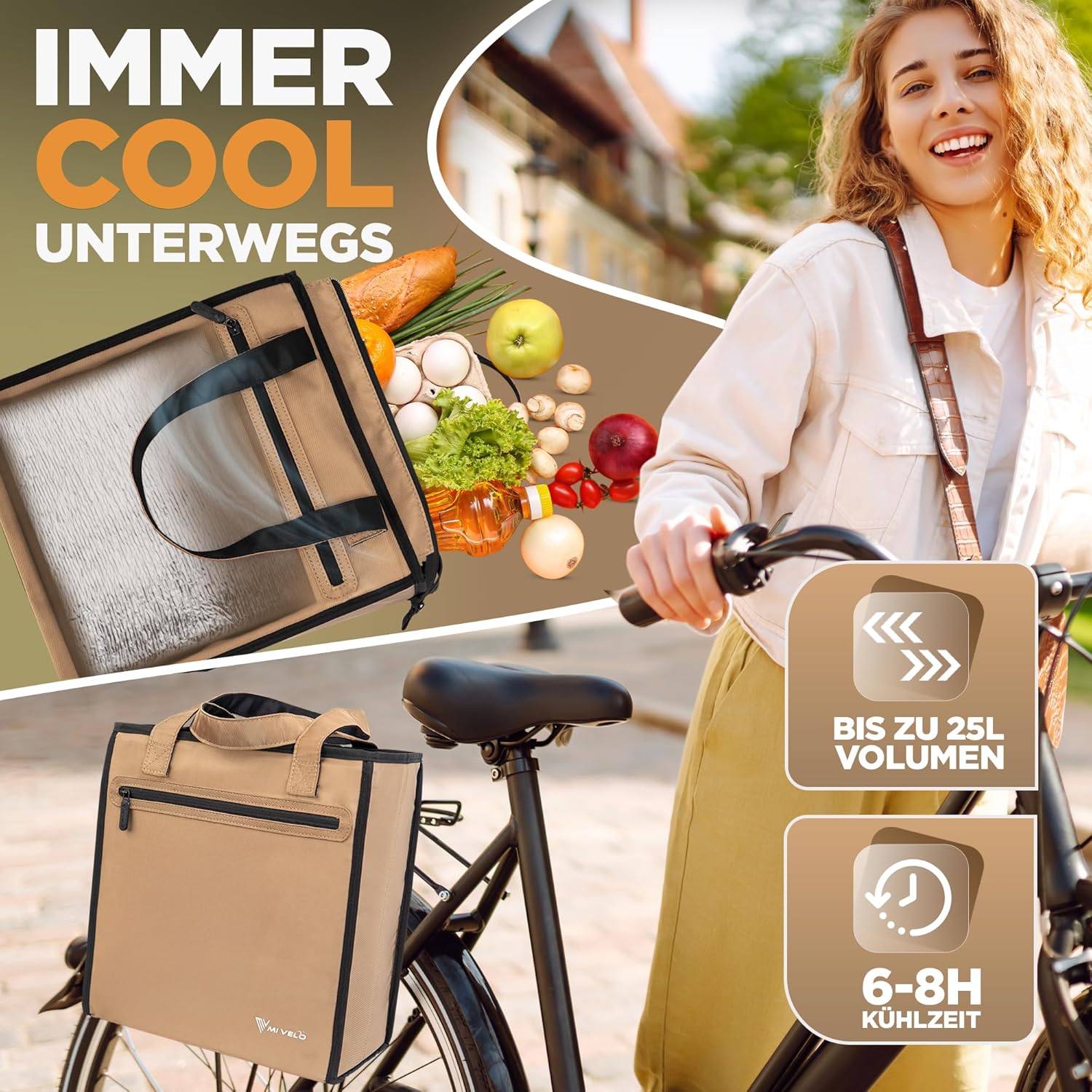 MIVELO - Sac à vélo pour les courses - Capacité de 25 litres et sac réfrigérant amovible - Polyester - Beige