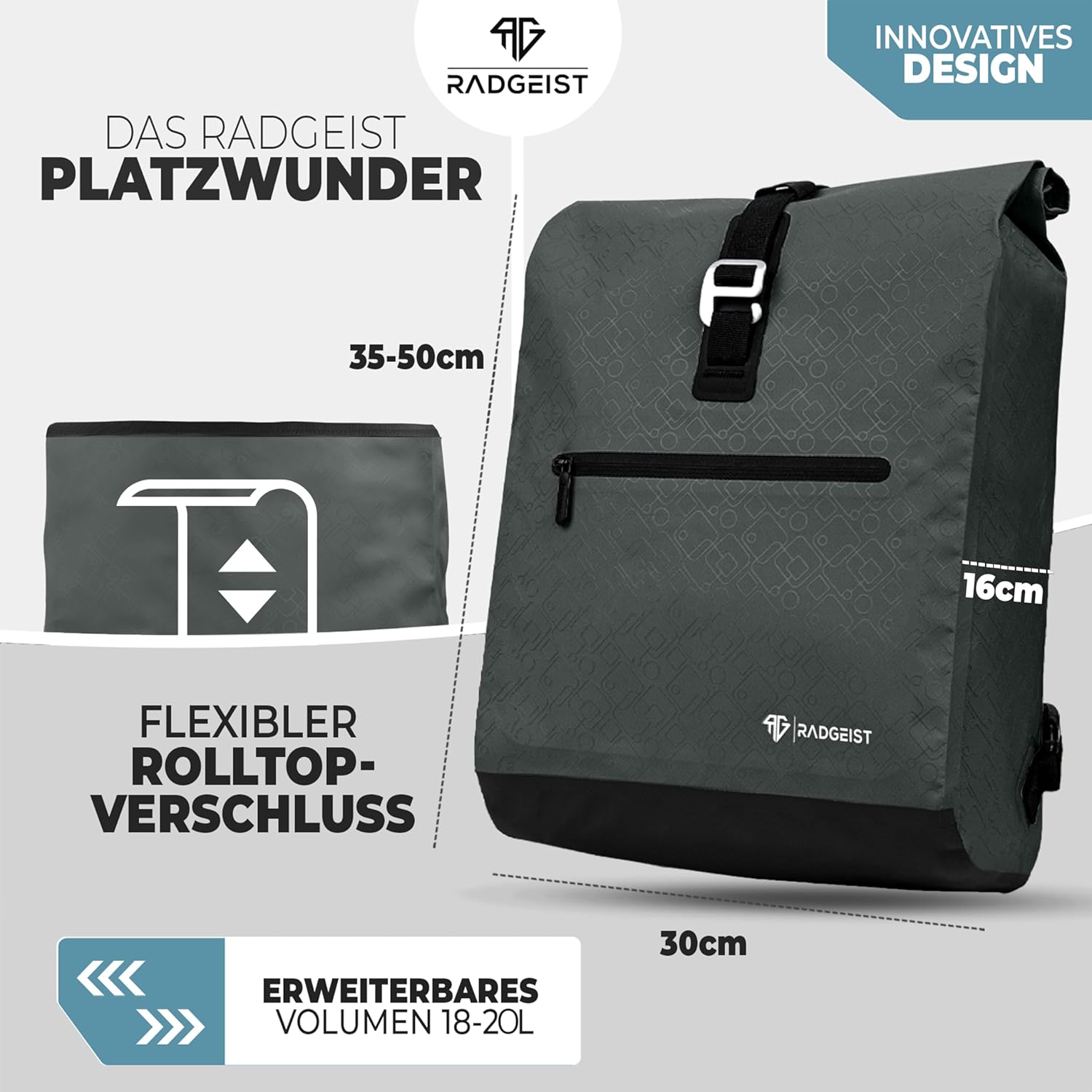 RADGEIST sac à vélo pour porte-bagages I sac à vélo & sac à dos I sac à vélo pour femmes & hommes I sac à bandoulière & sac à vélo 20L anthracite