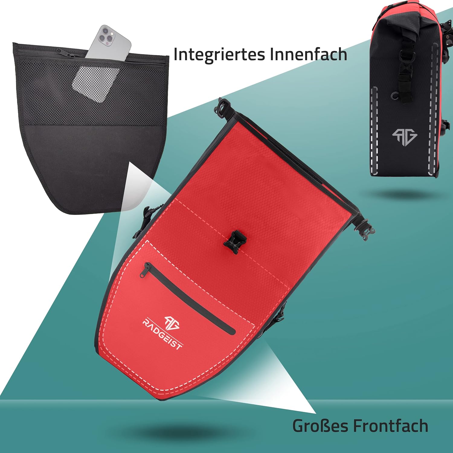 RADGEIST - Sac à bagages Pannier Bag - 28 L - Bâche rouge - Imperméable avec compartiment pour ordinateur portable - Sportif et fonctionnel - Bandoulière et réflecteurs inclus