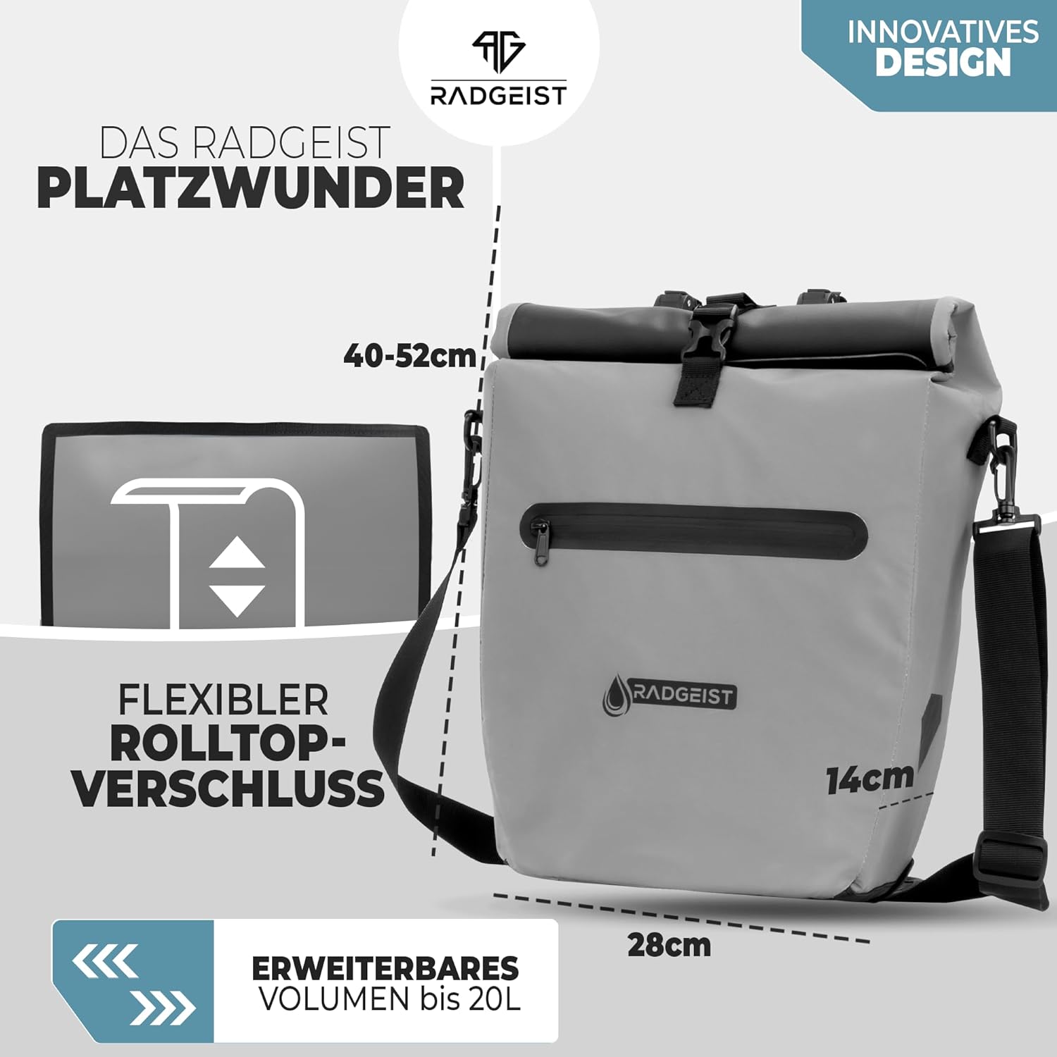 RADGEIST Sacoche pour porte-vélos - Sac pour porte-vélos - Sac à bagages étanche (Reflective 20L, Single)