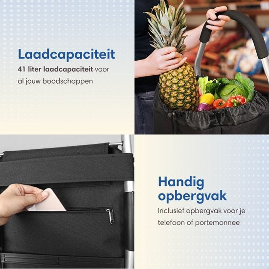 Chariot de courses - Safe Life - Caddie à roulettes Pliable - Compartiment Isotherme