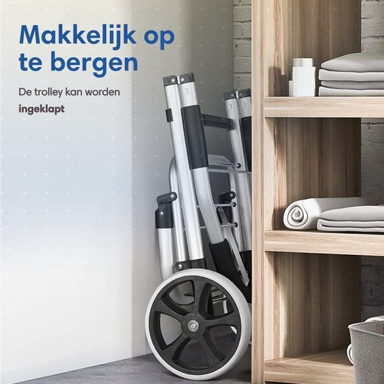 Grâce à son ingénieux système à deux roues, ce chariot est adapté à toutes les surfaces, y compris les escaliers. Vous franchissez les marches en toute simplicité, sans effort ni risque de tension musculaire.