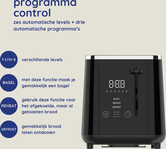 Profitez de toasts parfaitement grillés avec le grille-pain intelligent de Safecourt Kitchen. Cet appareil innovant à deux fentes fait passer votre expérience de grillage au niveau supérieur. Sélectionnez le brunissement souhaité et activez-le d'une seule touche, pour que vous puissiez toujours savourer vos toasts de la manière que vous préférez. L'écran numérique convivial s'affiche au fur et à mesure, pour que vous sachiez exactement quand vos toasts sont prêts. Avec six niveaux de brunissement, du doré léger au croustillant, vous obtiendrez le résultat souhaité à chaque fois. Ce grille-pain réunit style, qualité et facilité d'utilisation.