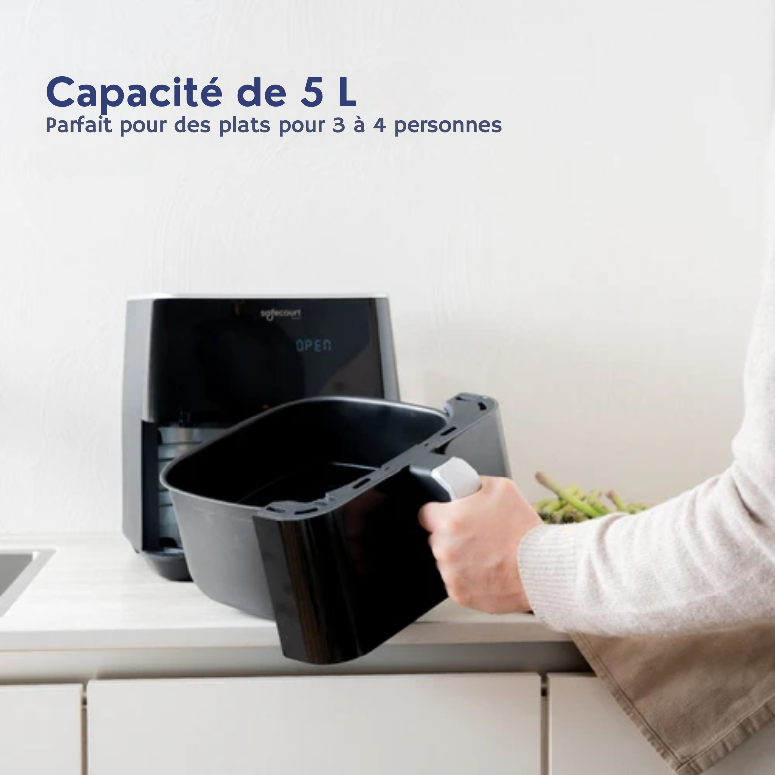 Avec une capacité de 5 litres, le Safecourt Kitchen Airfryer est conçu pour répondre aux besoins de votre famille, facilitant ainsi la préparation de repas pour toute la famille.