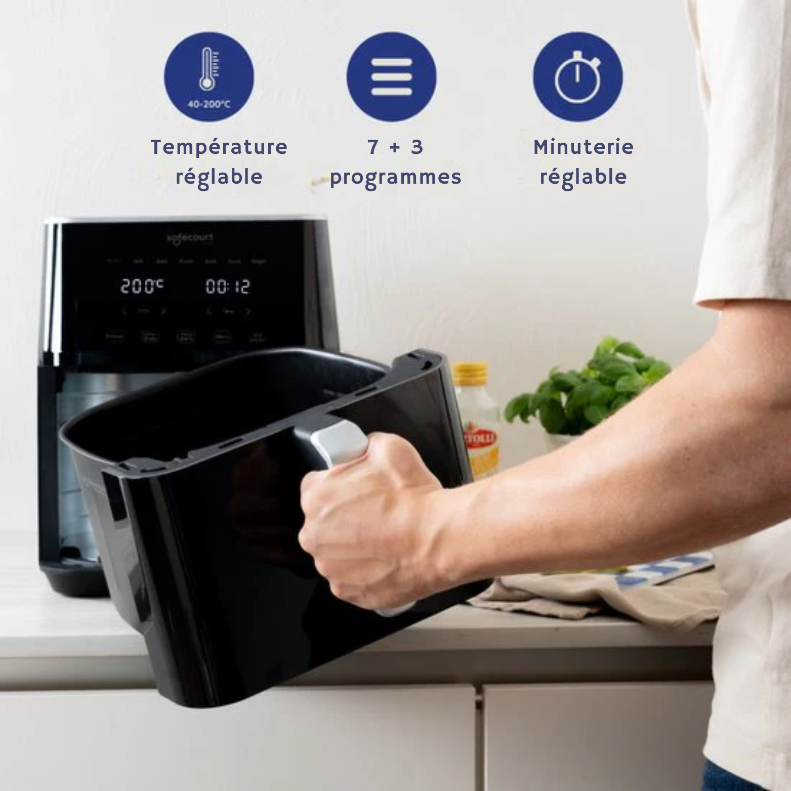 - Cuisson plus saine : Réduit l'utilisation de matières grasses grâce à la technologie d'air chaud.