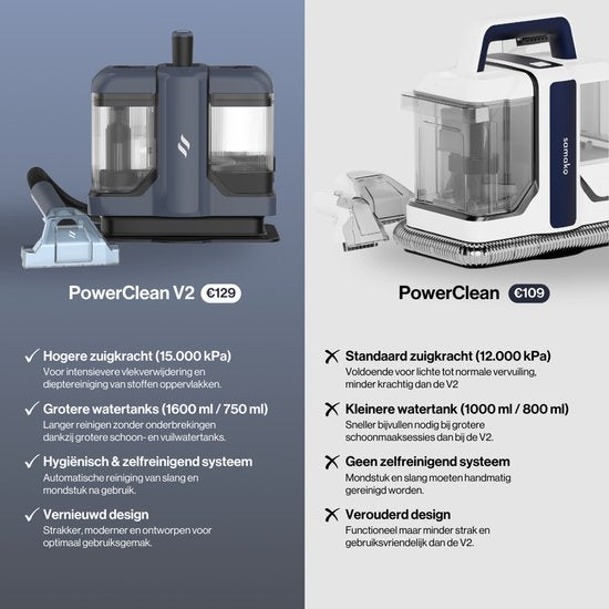 Le nettoyage est plus facile que jamais avec le PowerClean V2 ! Éliminez les taches tenaces, nettoyez en profondeur les tissus et profitez d'une maison fraîche et hygiénique - tous les jours. Puissant, compact et facile à utiliser - commandez dès aujourd'hui et découvrez la puissance du PowerClean V2 par vous-même.