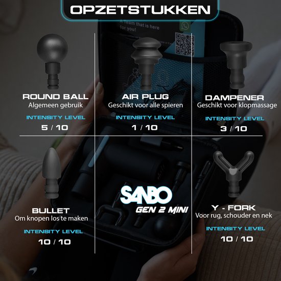 Sanbo Massage Gun Mini Gen 2 - Avec 5 accessoires et 6 étapes - Appareil de massage sportif et relaxant - Pistolet de massage - Professionnel - Noir