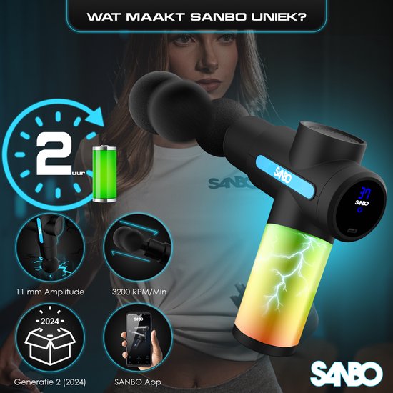 Le pistolet de massage Sanbo est utilisé dans différents cabinets aux Pays-Bas et en Belgique. Dans ces milieux, le Sanbo Massage Gun soutient les thérapeutes pendant les massages et est également recommandé comme "aftercare" après le traitement par un thérapeute pour favoriser le processus de récupération.Prévenir les blessures avec le Sanbo Massage App.