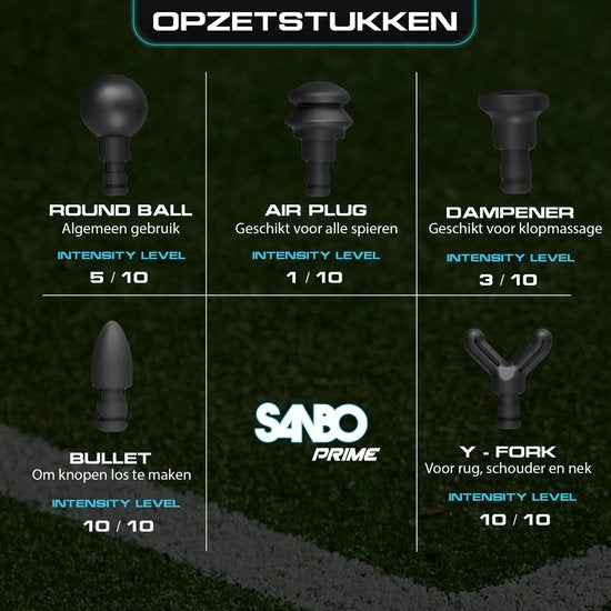 Le Sanbo Massage Gun Prime a été développé en collaboration avec différents massothérapeutes et physiothérapeutes. Tout cela afin de pouvoir tirer le maximum du pistolet de massage Sanbo et de garantir le fonctionnement des pistolets de massage SANBO.