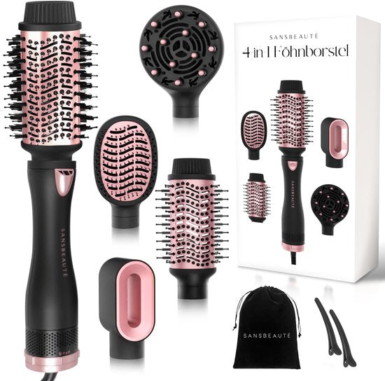Brosse coiffante 4 en 1 - Sansbeauté® - Brosse soufflante - Diffuseur inclus - Brosse sèche-cheveux – Fer à boucler – Brosse chauffante