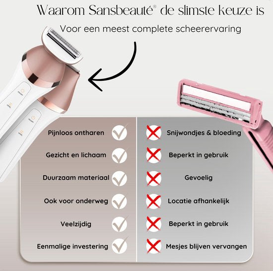Sansbeauté® 6-in-1 Rasage Femme Visage - Aisselles - Jambes - Maillot - Rasoir Femme - Epilateur - Epilateur Femme - Tondeuse Femme - Tondeuse Bikini - USB Rechargeable