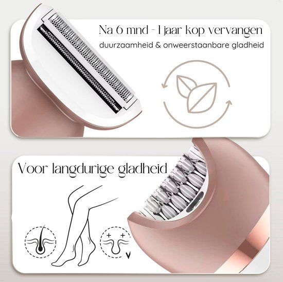 Vous en avez assez des poils indésirables sur votre visage, votre corps et votre maillot ? Vous en avez assez des méthodes de rasage inefficaces et douloureuses ? Voici le Sansbeauté® ; 6-in-1 Ladyshaver - votre solution ultime pour une peau lisse, radieuse et soignée. Avec six accessoires pour un rasage sans douleur, une épilation à la pince, une tonte du maillot, un nettoyage du visage et une lime à pied électrique pour des pieds soignés, le rasoir pour dames Sansbeauté® ; offre une routine de toilettage complète ! Le moteur puissant convient à tous les types de cheveux, des plus épais aux plus fins. La longue durée de vie de la batterie permet de l'emporter en vacances sans se soucier de la recharge. La conception étanche et sans fil est idéale pour une utilisation sous la douche ou dans le bain ! Commandez dès aujourd'hui le rasoir pour femmes 6-en-1 de Sansbeauté® ; et profitez d'une routine de toilettage complète, sans douleur et efficace ! Pourquoi le rasoir pour femmes 6-en-1 de Sansbeauté® ; est le choix le plus intelligent : ✓ Profitez d'une routine de rasage et de toilettage sans douleur - Le rasoir pour femmes 6-en-1 de Sansbeauté® ; assure une épilation douce et en douceur des poils indésirables sur votre visage et votre corps, sans blessures gênantes ou irritations douloureuses. Les couches protectrices supplémentaires de la tête du rasoir pour femmes permettent un rasage sans effort et sans souci. Dites adieu aux lames émoussées, aux rasages inconfortables, aux éruptions cutanées dues au rasage, aux poils incarnés, et profitez d'une peau douce et soyeuse sans aucune irritation. Même si vous avez la peau sensible, ce rasoir pour femmes est parfait pour vous ! ✓ La solution de beauté et de rasage tout-en-één (multi-usages) - Avec le Sansbeauté® ; 6-in-1 Ladyshaver, vous obtenez un ensemble de beauté complet qui élimine les poils indésirables sur le visage, le corps et le maillot sans irritation de la peau, et assure une peau radieuse. Cet ensemble polyvalent comprend six accessoires : une tête de rasage, un épilateur, une tondeuse, un masseur facial, un nettoyeur facial et une lime électrique pour les pieds. Le masseur facial et le nettoyant facial améliorent la santé et l'éclat de votre peau, tandis que la lime électrique pour les pieds prépare vos pieds pour l'été. Préparez-vous à une peau lisse et sans poils et à une expérience de beauté complète sans l'expérience douloureuse du rasage. Pourquoi se contenter de moins quand on peut tout avoir en één ? ✓ La liberté ultime du rasage à sec et à l'eau - Faites l'expérience de la liberté ultime avec le Sansbeauté ; Ladyshave, que vous optiez pour un rasage à sec ou un rasage à l'eau avec de la mousse. Cet appareil étanche permet de se raser n'importe où, même en camping, et est parfait pour un rasage rapide sous la douche ou dans le bain. Il est également facile à nettoyer sous le robinet. ✓ Bénéficiez d'une performance de rasage supérieure avec Sansbeauté® ; - Profitez d'une qualité de rasage inëvée avec le rasoir pour femmes 6-en-1 Sansbeauté ;. Cet outil polyvalent est fabriqué à partir de matériaux de haute qualité et offre une technologie avancée pour un rasage sûr, efficace et précis. Les têtes de rasage spéciales sont conçues pour rester aiguisées pendant longtemps, afin que vous puissiez vous raser sans effort, sans la frustration des lames émoussées ou de l'irritation de la peau. Investissez dans la meilleure qualité et profitez de résultats de rasage confortables à chaque fois avec le Sansbeauté ; 6-in-1 Ladyshaver ! ✓ Tête de rasage durable jusqu'à 1 an (têtes de rasage remplaçables) - Avec nos têtes de rasage de haute qualité, nous offrons aux clients des performances à long terme, généralement entre 6 mois et 1 an. La durée de vie exacte peut varier en fonction de votre routine de rasage et de votre type de cheveux. Les têtes de rasage de remplacement sont facilement disponibles sur bol.com, afin que vous puissiez rapidement profiter à nouveau d'une expérience de rasage optimale. ✓ Alternative durable aux lames jetables - Nos lames innovantes et nos accessoires polyvalents offrent une solution économique aux lames jetables. Économisez de l'argent sur les produits dépilatoires en vrac et évitez le remplacement régulier des lames émoussées. Nos accessoires et nos lames de rasage durables et efficaces constituent l'investissement idéal pour une peau soyeuse, sans le coût constant des lames jetables. ✓ La commodité à tous les niveaux - Grâce à nos têtes de rasage et à notre technologie avancée, vous éliminez les poils indésirables plus rapidement et plus facilement que jamais, sans passer des heures à vous raser ou vous rendre dans un salon de coiffure onéreux. Ce rasoir féminin polyvalent offre une commodité tout-en-un. Les accessoires de beauté inclus rendent inutiles les traitements séparés pour les pieds et le visage, vous offrant une routine de toilettage complète dans één appareil. ✓ Êtes-vous prêt pour votre voyage ? - Grâce à son verrou de voyage pratique et à sa conception légère, vous pouvez emporter le rasoir pour femmes 6-en-1 partout où vous allez. Avec le Sansbeauté ; 6-in-1 Ladyshaver, vous avez toujours la solution rapide parfaite à portée de main, où que vous soyez ! ✓ Batterie puissante et indicateur de batterie - Vous voulez un rasage puissant, sans être gênée par des câbles ? Le Sansbeauté ; 6-in-1 Ladyshaver est doté d'une batterie puissante qui se charge complètement en 120 minutes et offre jusqu'à 120 minutes d'utilisation. L'appareil est entièrement sans fil, vous n'avez donc pas à vous soucier des cordons irritants. De plus, il est doté d'un indicateur LED pratique qui s'allume en rouge lorsqu'il est temps de le recharger. Avec le Sansbeauté ; 6-in-1 Ladyshaver, vous êtes assurée d'un rasage rapide, facile et 