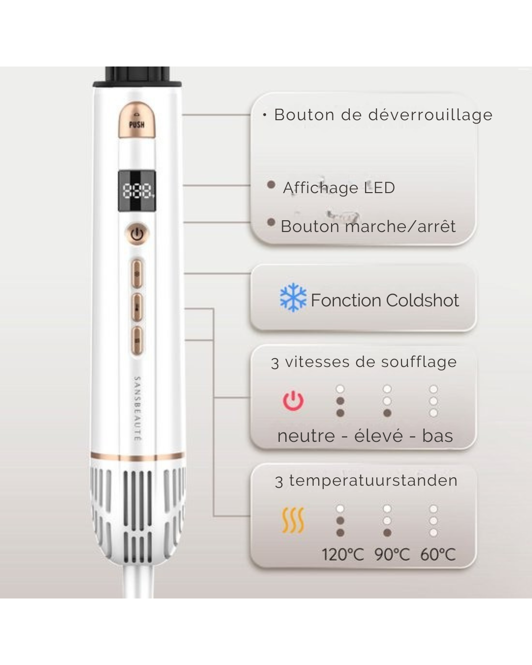 Brosse coiffante 8 en 1 - Sansbeauté® - Diffuseur inclus - Brosse sèche-cheveux – Fer à boucler – Brosse chauffante – Fonction air froid