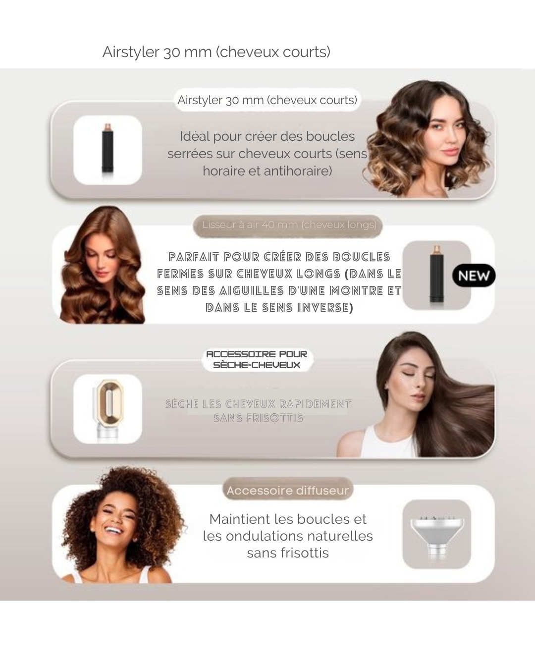 - 30mm airstyler pour les boucles serrées, parfait pour les cheveux plus courts.