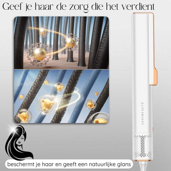 Lisseur & Sèche-Cheveux - Sansbeauté® - 2-en-1 - 80°C à 140°C - Souffle froid - Blanc