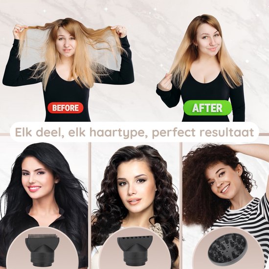 ✓Divers accessoiresRencontrez la polyvalence ultime - Dites adieu à la nécessité d'utiliser différents outils de coiffage ! Le sèche-cheveux Sansbeauté® avec diffuseur vous offre une solution complète de séchage et de coiffage. Notre sèche-cheveux est livré avec plusieurs accessoires, tels qu'un concentrateur pour un flux d'air ciblé, un diffuseur pour de belles boucles et un accessoire de volume pour plus de corps. Que vous souhaitiez sécher, boucler, onduler ou ajouter du volume, vous serez prête à relever tous les défis de coiffure avec ce sèche-cheveux multifonctionnel.