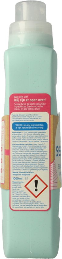 Seepje Détergent liquide Colour Magic Magnolia 1 litre - 23 lavagesCette lessive colorée naturelle à 99,8 % de Seepje nettoie vos vêtements en profondeur et veille à ce que les couleurs restent éclatantes plus longtemps. Nous luttons contre les bouloches et les peluches pour que vous puissiez briller comme un arc-en-ciel ! * 99,8% d'ingrédients d'origine naturelle * Fait briller les couleurs * Efficace même à 20°C * La bouteille est composée à 97% de plastique recyclé néerlandais et est recyclable * Certifié par Ecocert et Vegan SocietyUn vrai nettoyage commence par des ingrédients durables. Vous pouvez faire votre lessive sans parfums synthétiques, sans colorants et sans microplastiques. Seepje utilise l'écorce du fruit Sapindus de l'Himalaya, qui contient naturellement du savon ! C'est mieux pour l'environnement et pour tout le monde.