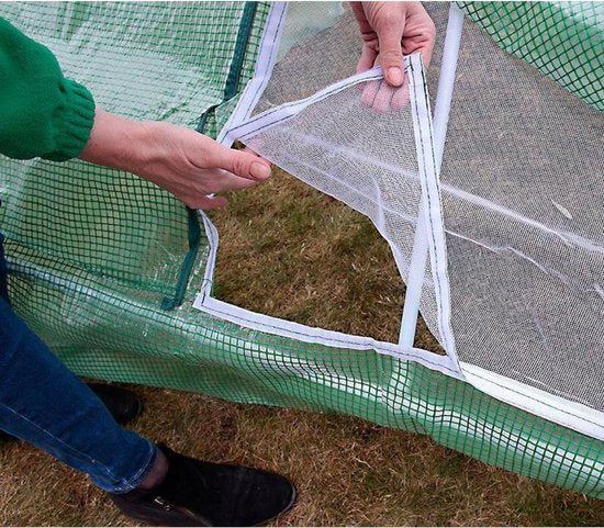 - Facilité d'accès : Dotée d'une porte équipée d'une fermeture éclair, la serre permet un accès facile aux cultures pour les soins et l'entretien.