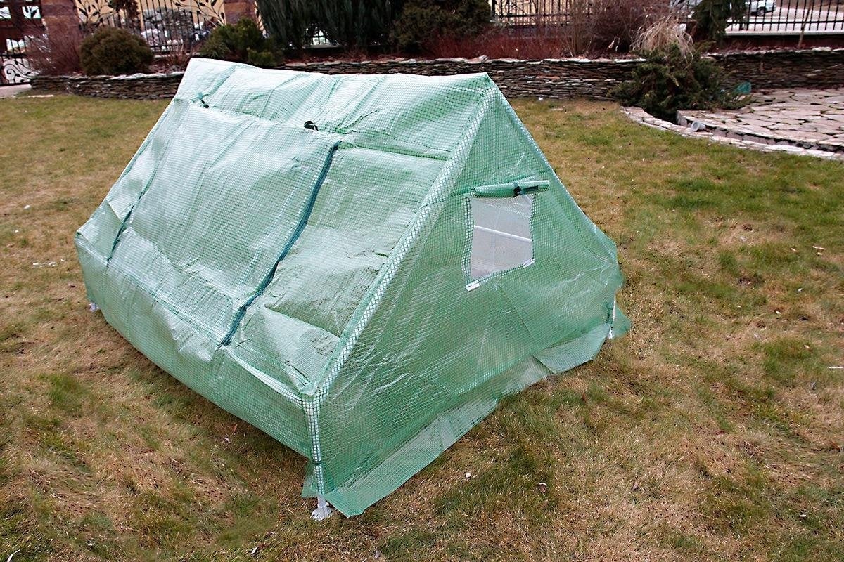Le cadre de la serre est en métal et dispose d'un film PE renforcé vert. La film est résistant aux UV et laisse passer une lumière diffuse qui est bonne pour la croissance des cultures. La serre est équipée d'une porte qui s'ouvre à l'aide d'une fermeture éclair, ce qui permet d'atteindre facilement les cultures dans la serre. La serre dispose également de deux fenêtres pour permettre à l'air frais d'entrer.