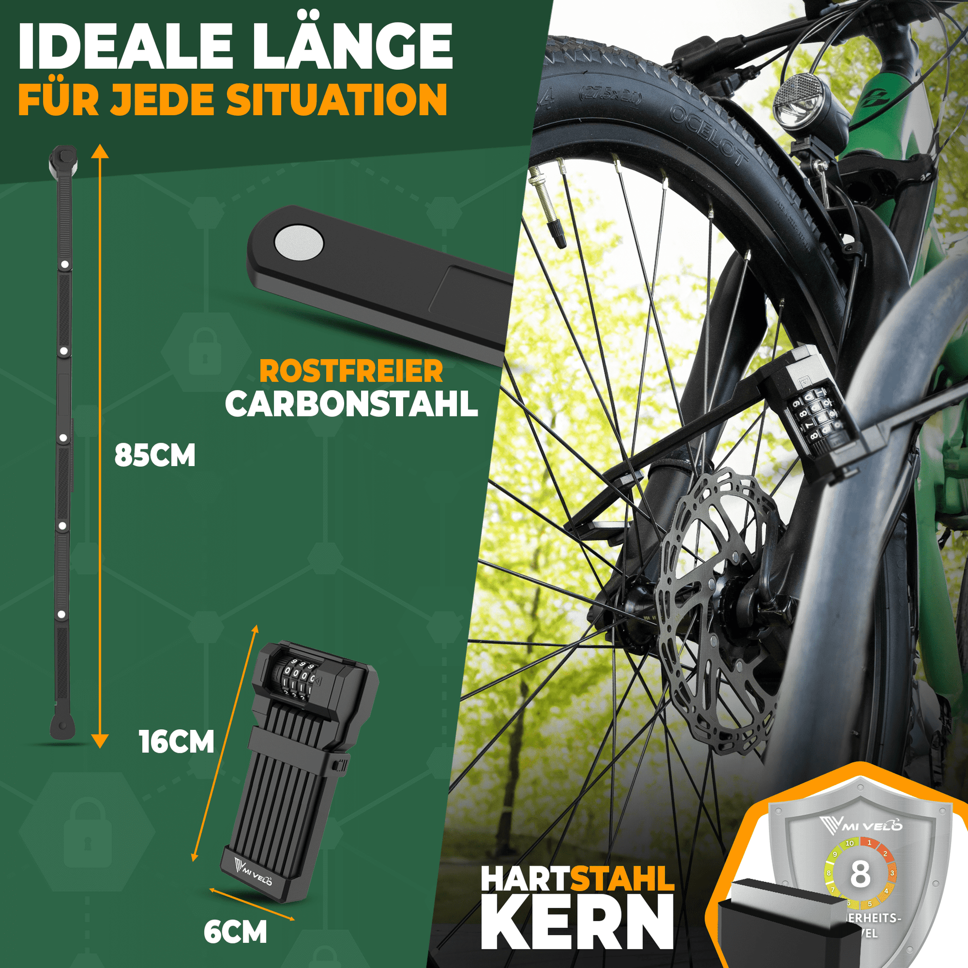 MIVELO - Serrure pliante avec code à combinaison - 85 cm de long - Niveau de sécurité 08/10 - Acier au carbone - Noir