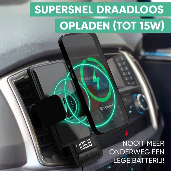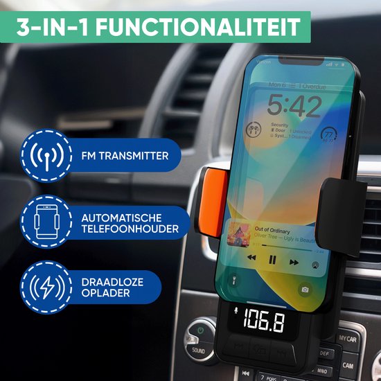 - Multifonctionnel : Chargeur sans fil, berceau automatique pour téléphone et émetteur FM