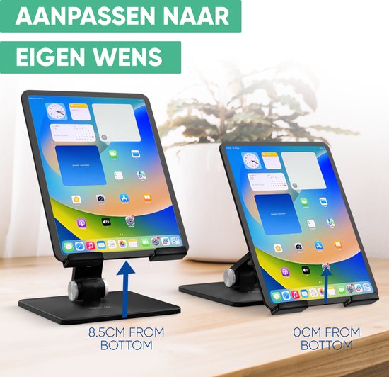 Vous voulez faire des appels vidéo pour le travail ou rattraper vos amis ? Grâce à ce support de tablette, vous n'aurez plus les bras fatigués. Placez simplement votre tablette dans le support et commencez à faire des appels vidéo ! Vous pouvez également utiliser le support pour utiliser votre tablette comme second écran, par exemple à côté de votre ordinateur portable. Vous pouvez ainsi effectuer plusieurs tâches à la fois sans que le support ne tombe ou ne se déplace.