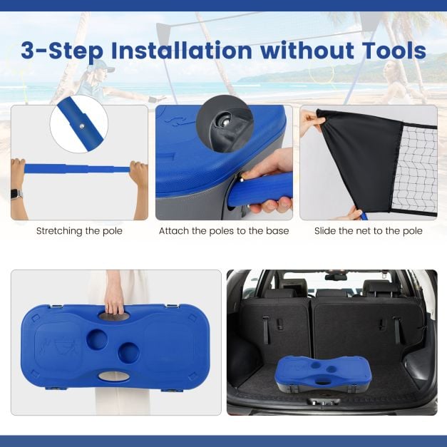 Ce produit est idéal pour les fêtes d'été, le camping et les vacances en famille afin de profiter de merveilleuses réunions ! Il suffit de quelques minutes pour l'installer, la valise est dotée d'une poignée facile à transporter. Fabriqué en matériaux de haute qualité, il est conçu pour une longue durée de vie. Parfait pour s'amuser au badminton ou au volley-ball et pour que la famille continue à jouer en plein air.