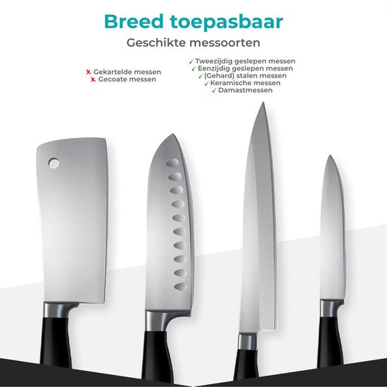 ✓ Couteaux aiguisés des deux côtés (coupe en V)
