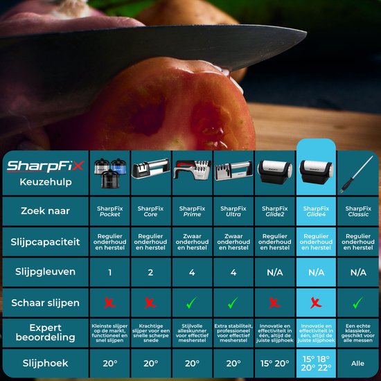 L'aiguiseur de couteaux à roulettes SharpFix rend l'aiguisage facile, même pour les débutants. Grâce à son design ergonomique et à ses angles d'aiguisage fixes de 15, 18, 20 et 22 degrés, vous aiguiserez toujours sous le bon angle.