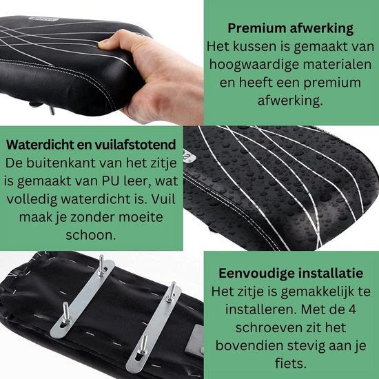 Le siège de vélo est en cuir PU. Il s'agit d'un cuir synthétique qui ressemble à du cuir normal, mais qui a l'avantage d'être très facile à nettoyer. Vous pouvez facilement enlever les taches avec un chiffon humide.