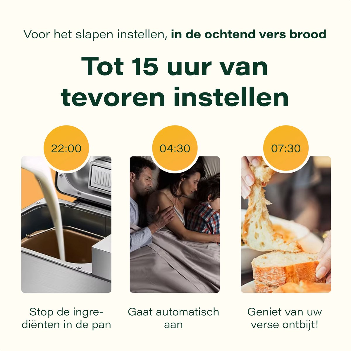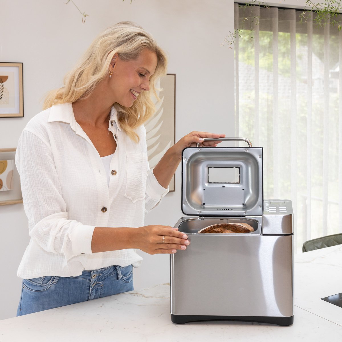 Avec le Skoov Bakemaster, vous pouvez facilement cuire du pain frais et non transformé dans votre propre cuisine, sans aucun souci. Que vous soyez expérimenté ou non, cette machine à pain se charge automatiquement du pétrissage, de la levée et de la cuisson, pour que vous puissiez mettre du pain parfait sur la table à chaque fois.