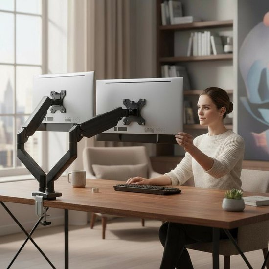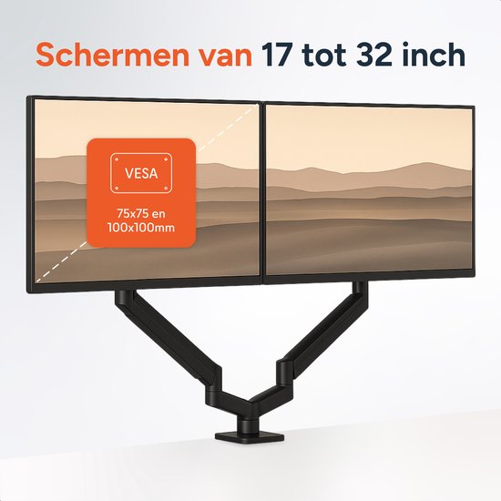 Skoov Bras pour moniteur avec vérin à gaz - Pour 13-32 pouces - 2 écrans - Support - Moniteur - Support - Support - Extra stable - Noir