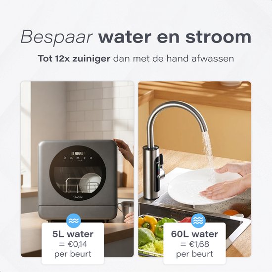 Pas de place pour un grand lave-vaisselle, mais marre de faire la vaisselle tous les jours ? Le Skoov Mini est le mini-lave-vaisselle idéal pour les petites cuisines, les studios, les résidences étudiantes, les petites maisons, les camping-cars et les caravanes. Cet appareil compact et autonome offre une puissance surprenante, fonctionne en silence et ne consomme que 5 litres d'eau par cycle. Efficace, respectueux de l'environnement et facile à utiliser sans installation.