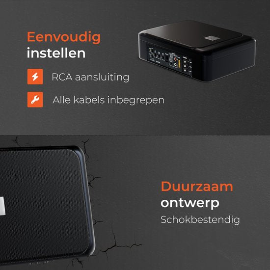 La taille d'installation de seulement 28,5x20,5x7,8 cm permet de placer facilement le subwoofer, par exemple sous le siège de la voiture, sans occuper beaucoup d'espace dans votre véhicule. Le subwoofer s'adapte ainsi parfaitement à toutes les voitures et à tous les styles de conduite.