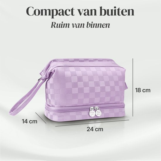 - Compact avec beaucoup d'espace: Ce sac offre suffisamment d'espace pour tous vos articles de toilette et de maquillage, sans être trop encombrant à transporter.